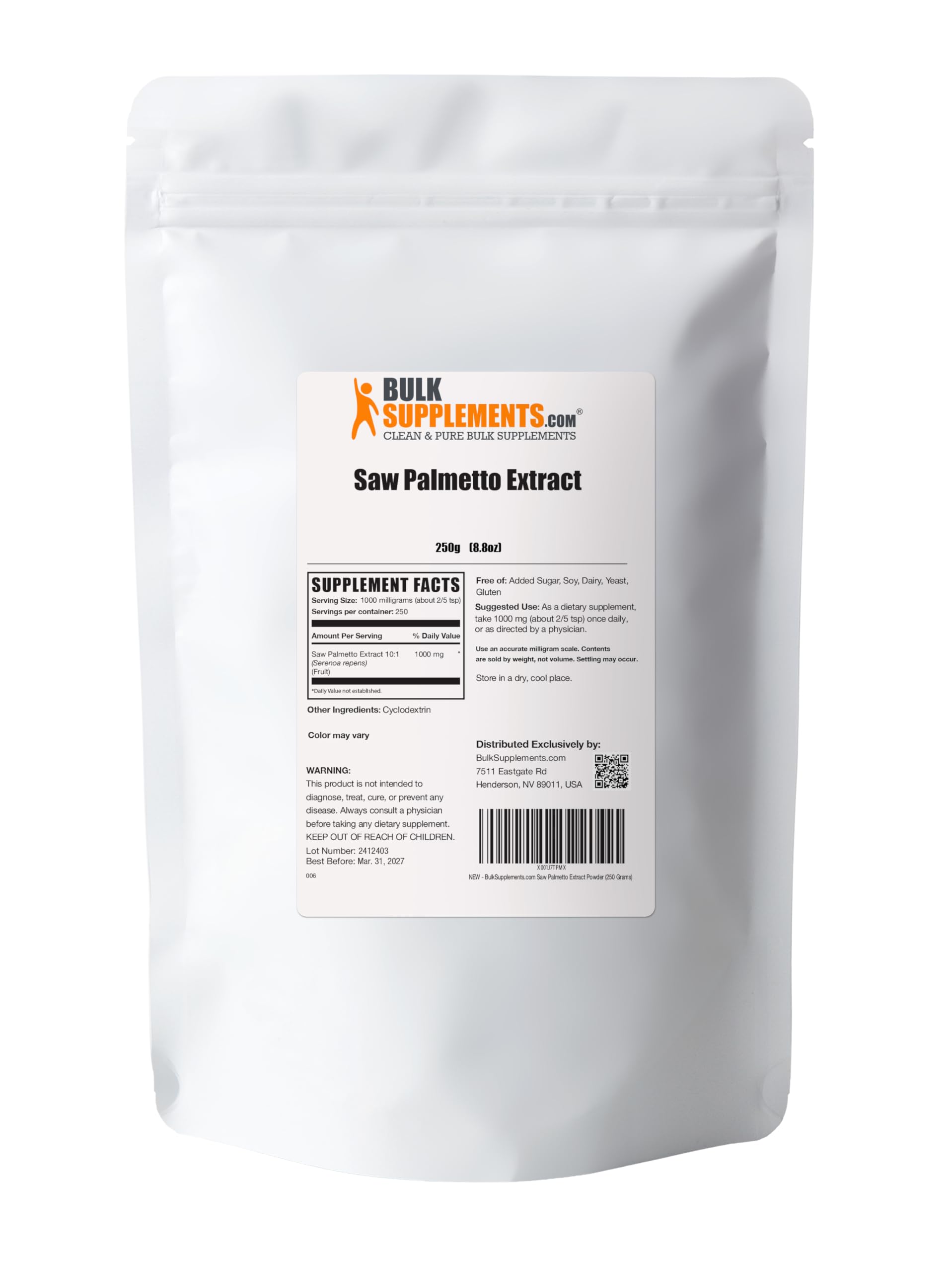 4. BulkSupplements Saw Palmetto Extract Powder